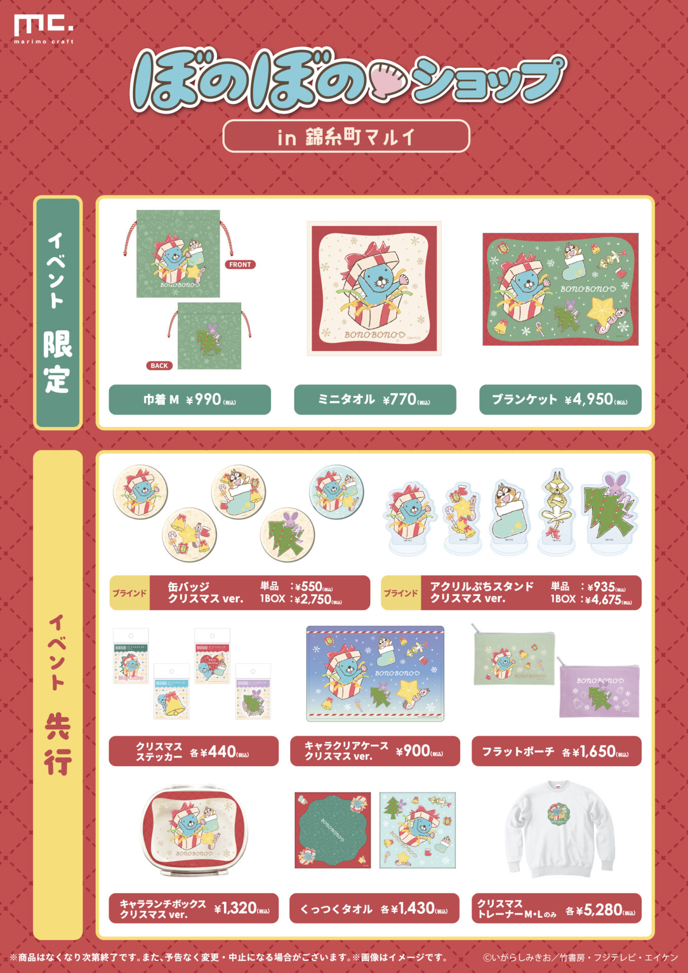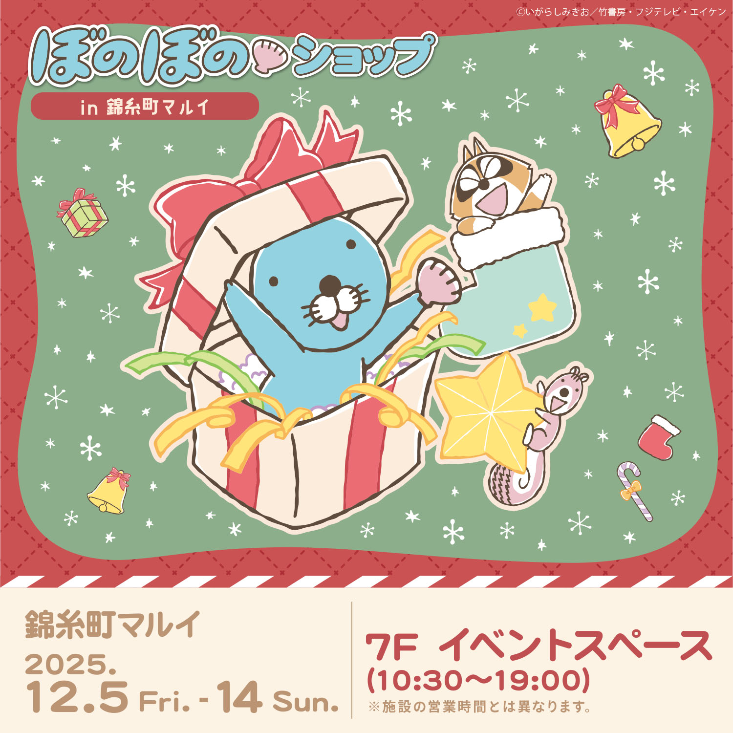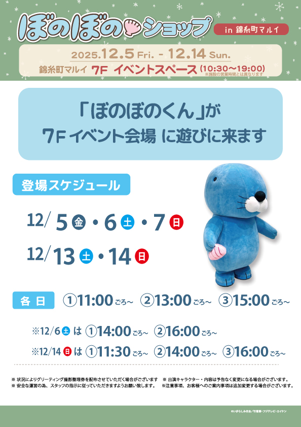 12/5(金)から錦糸町マルイにて開催!イベント限定品やクリスマス柄のイベント先行品も販売いたします!いがらしみきお先生のサイン会、あんずまろん先生の占いなど、イベントも盛りだくさん!ぜひ遊びに来てね♪
