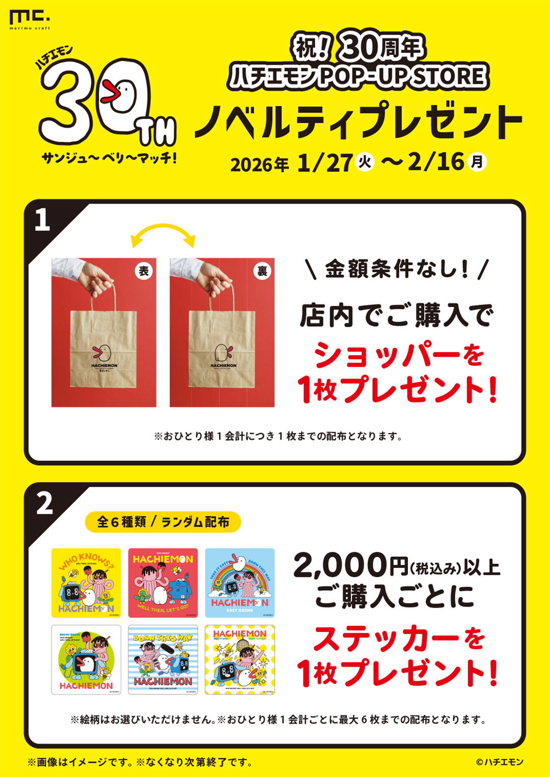 ・税込2,000円以上お買い上げごとに「ステッカー」を1枚プレゼント!(全6種・ランダム)