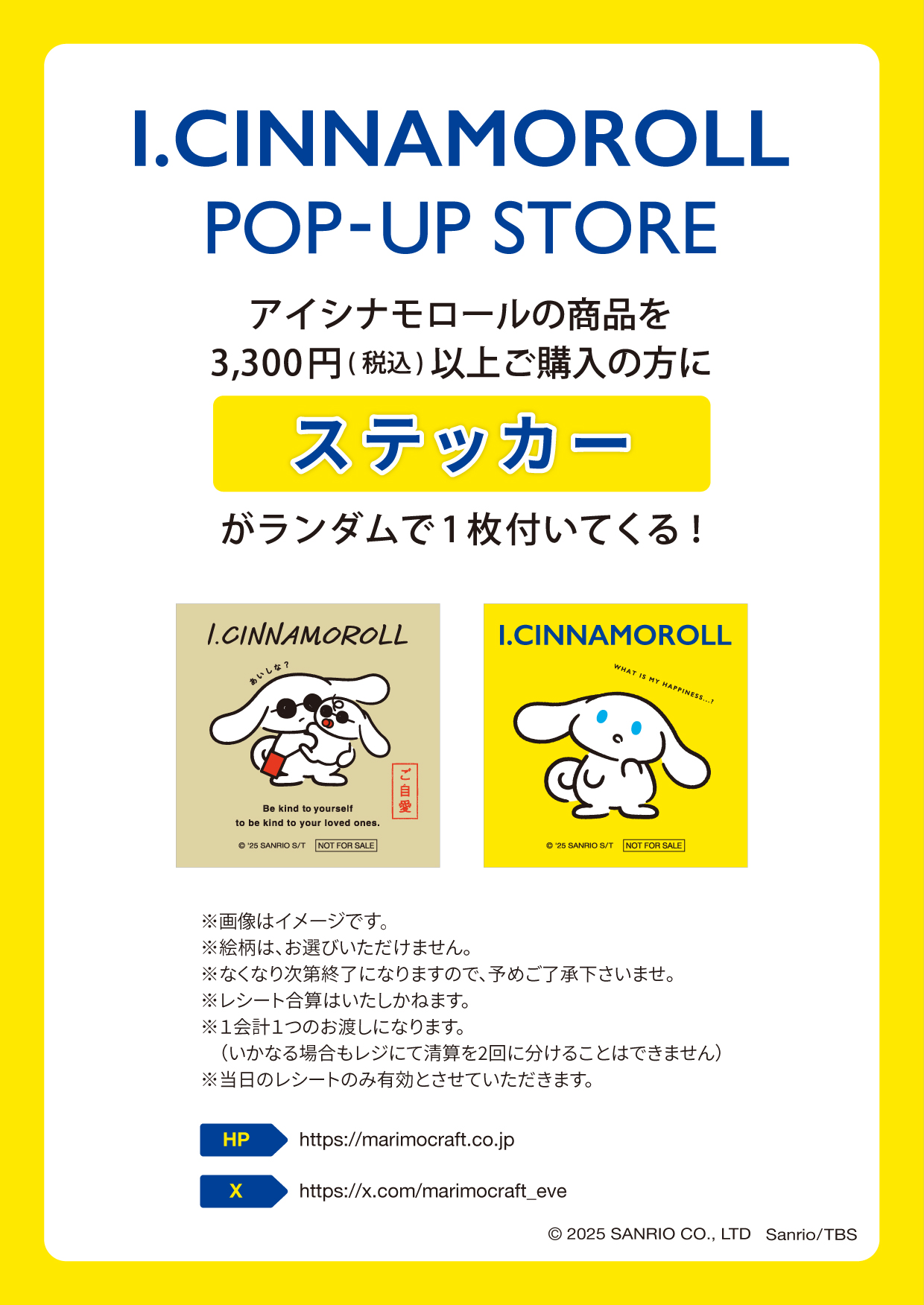 ステッカー配布・I.CINNAMOROLL POP-UP STORE@大丸梅田店5F「キャラコレ」