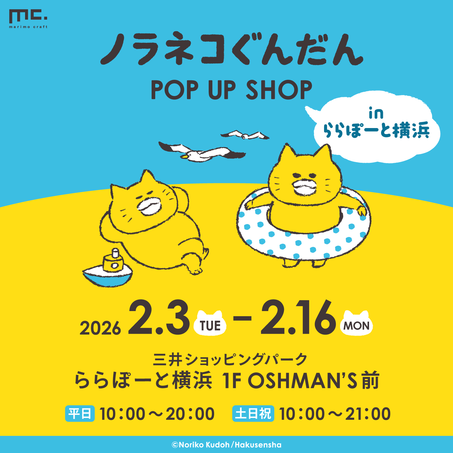 「ノラネコぐんだん」のPOP UP SHOPが2/3(火)よりららぽーと横浜に期間限定で登場!イベント限定品やお買い上げ特典もご用意しています♪