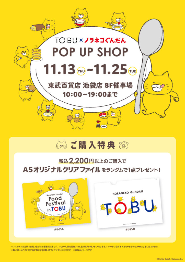 ノラネコぐんだんの期間限定ショップが東武百貨店 池袋店にて11/13(木)よりスタート!イベント限定商品やお買い上げ特典もご用意しています♪