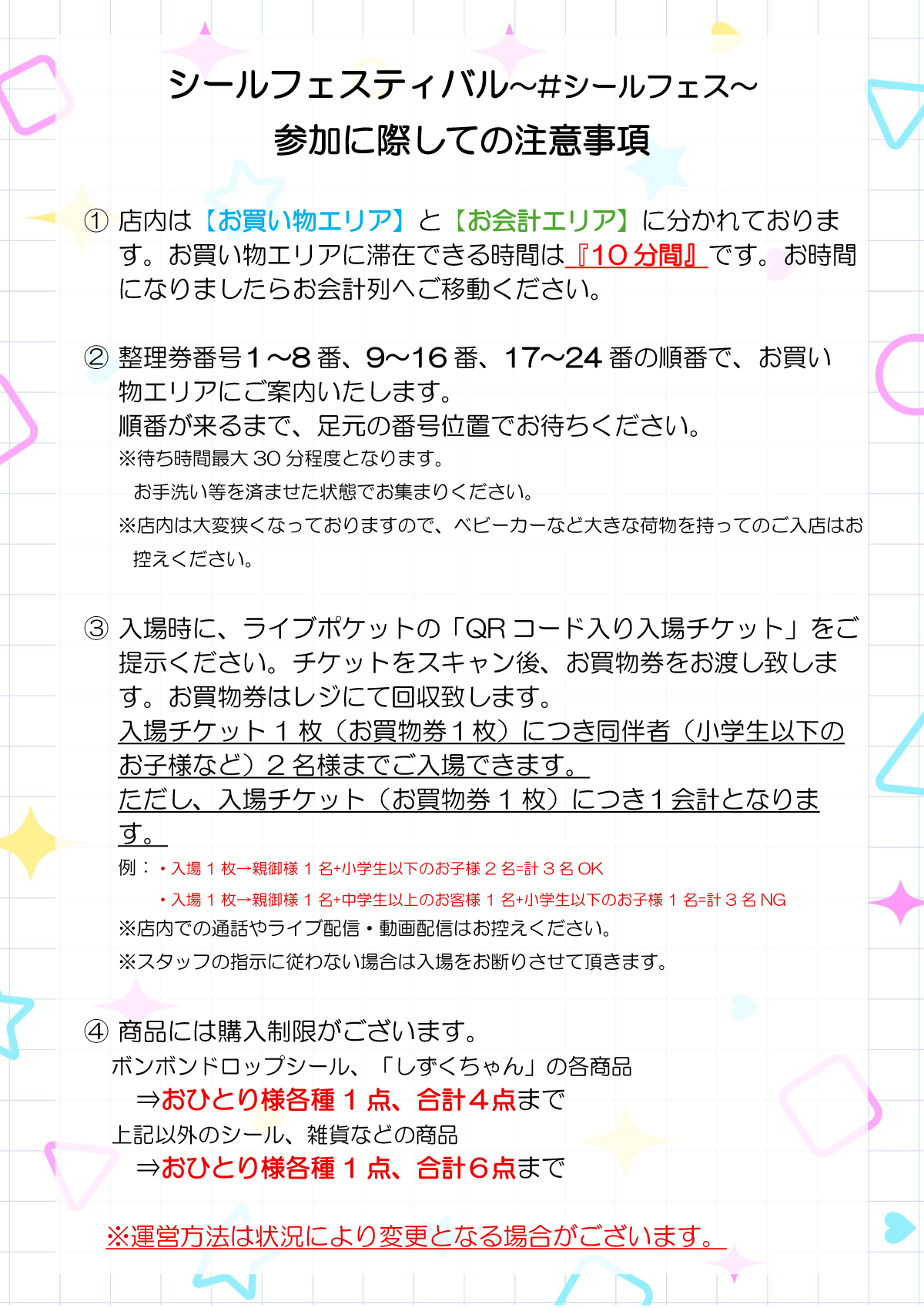 ◆お買い物は10分間で完全入替制となっております。
