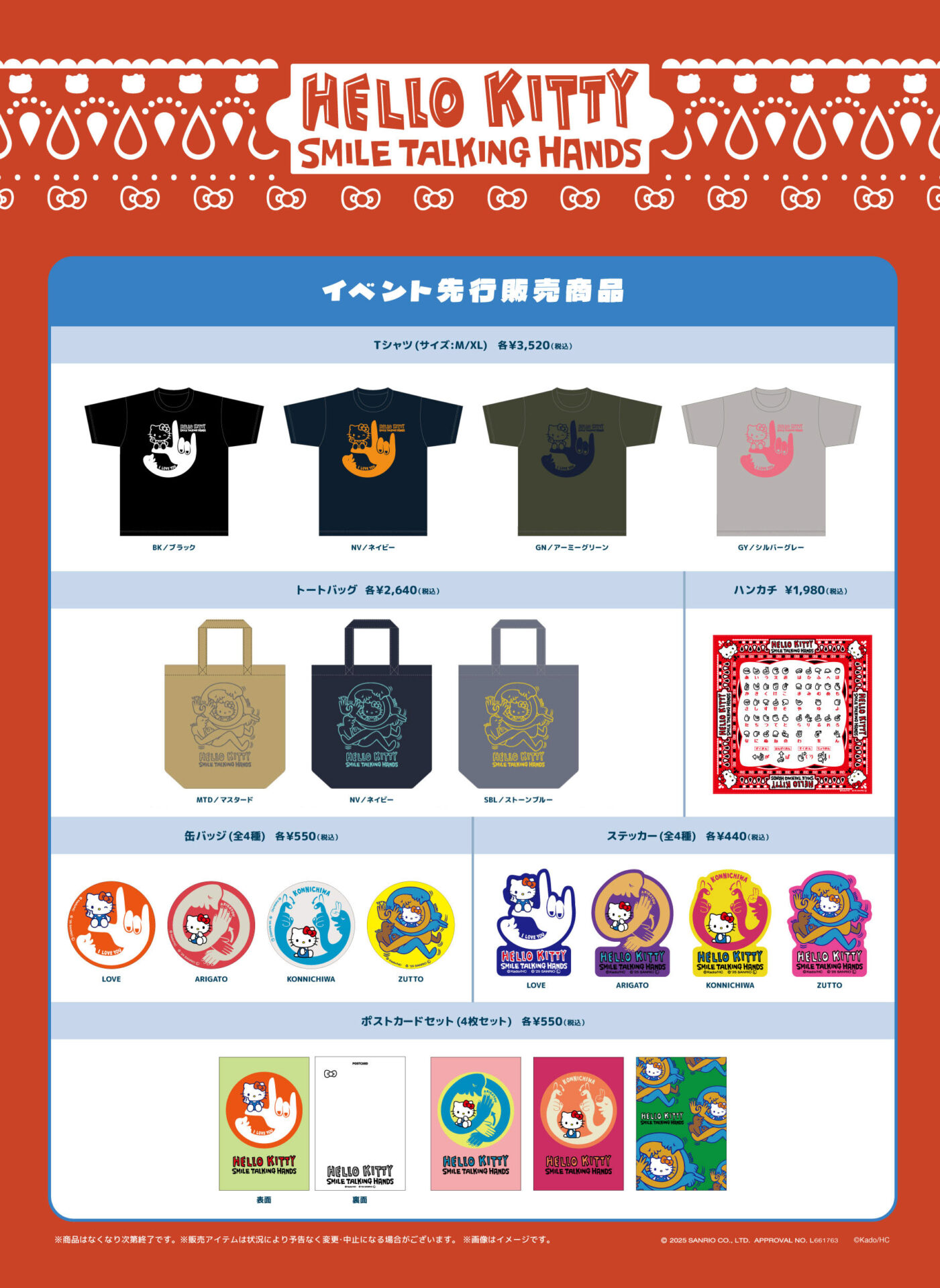 手話をモチーフにした作品や、手話を表現する動物のポップなイラストが特徴的な作家『門秀彦』と、ハローキティのコラボレーション!可愛いコラボ商品に加え、門秀彦が手掛けるブランド『Smile Talking Hands』の商品もお取り扱いいたします。11/6にはライブペイントも開催予定です!
