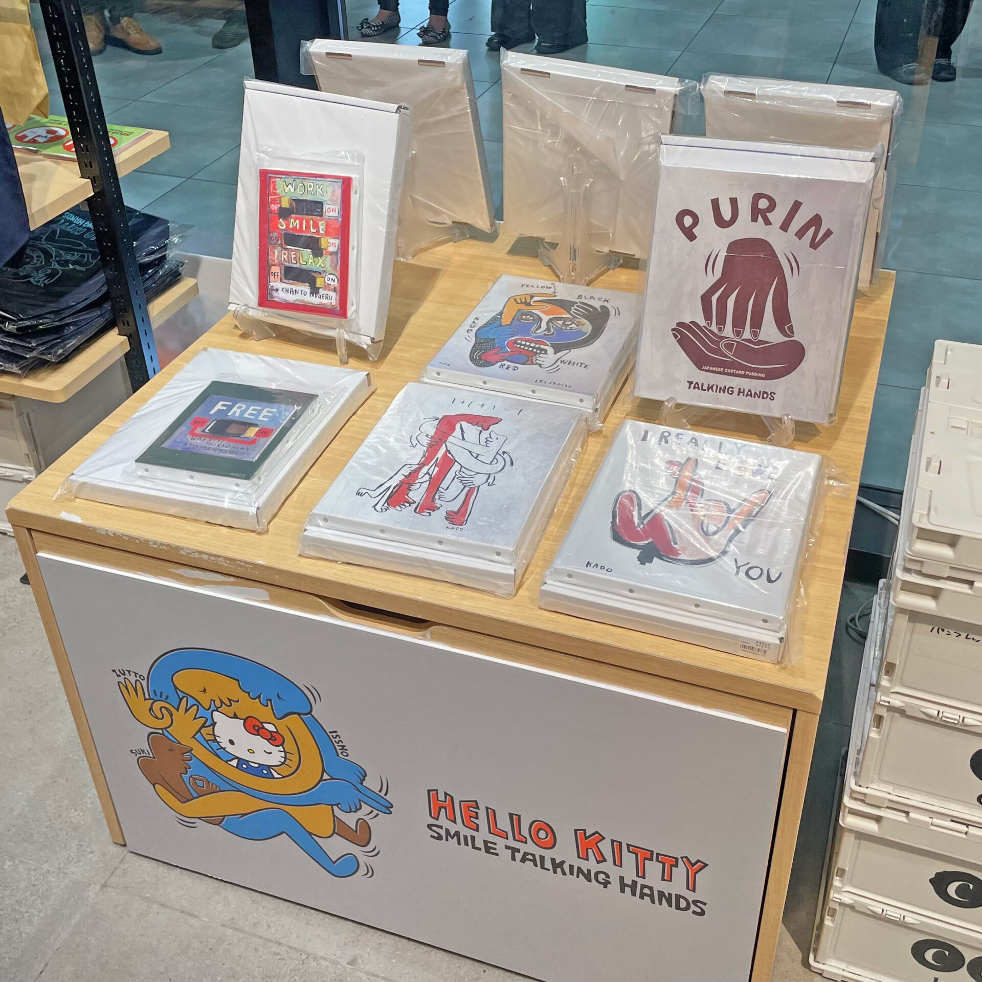 手話をモチーフにした作品や、手話を表現する動物のポップなイラストが特徴的な作家『門秀彦』と、ハローキティのコラボレーション!可愛いコラボ商品に加え、門秀彦が手掛けるブランド『Smile Talking Hands』の商品もお取り扱いいたします。11/6にはライブペイントも開催予定です!