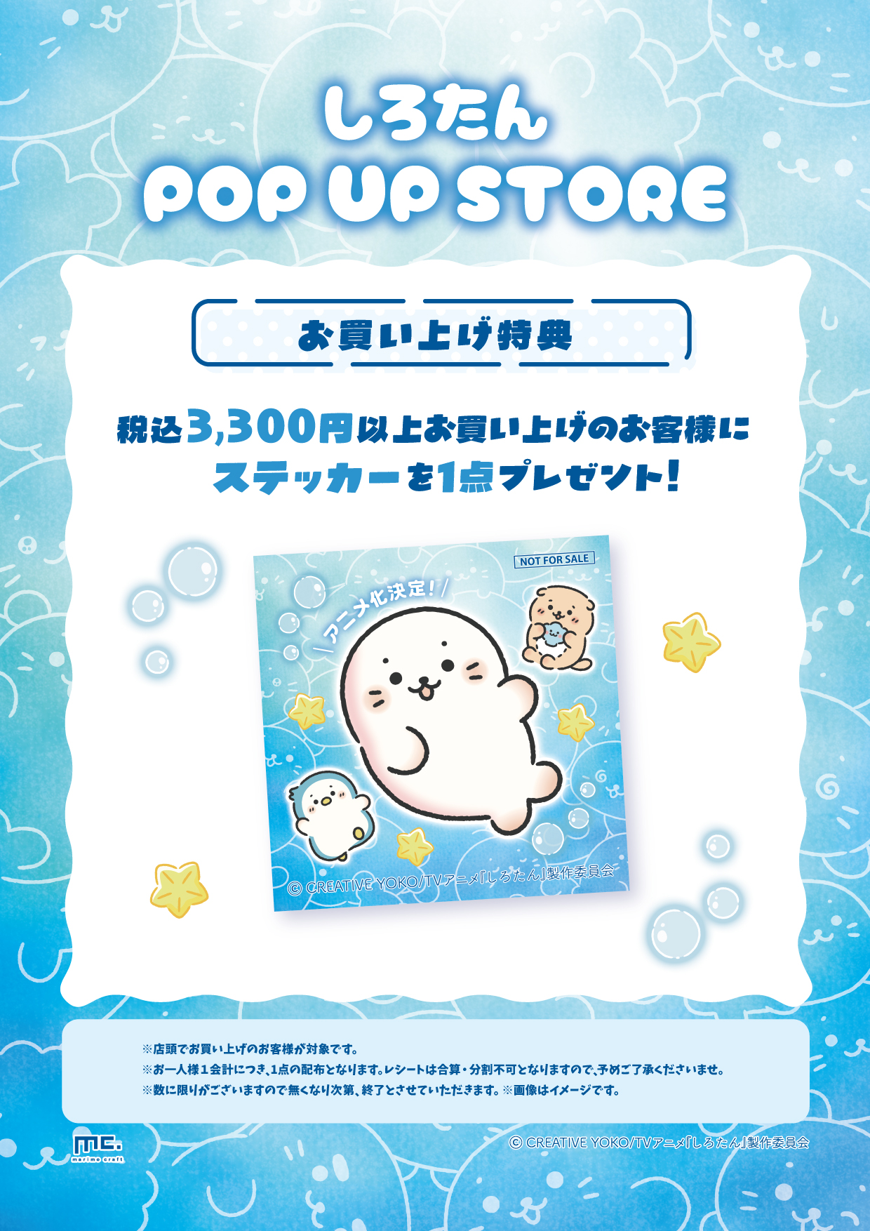 税込3,300円以上お買い上げの方に、TVアニメ『しろたん』のティザービジュアルを使用した「ステッカー」を1点プレゼント!